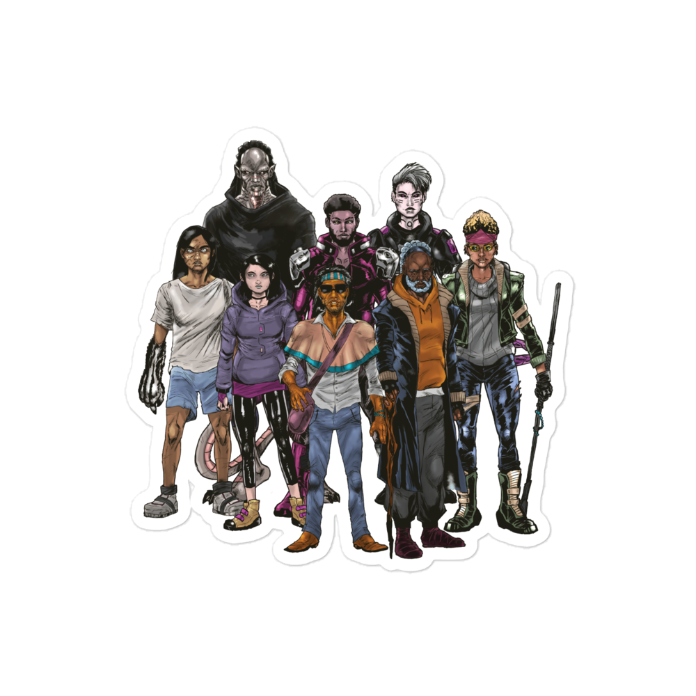 New sticker from the Langford Studio featuring characters from our sci graphic novel series Seed