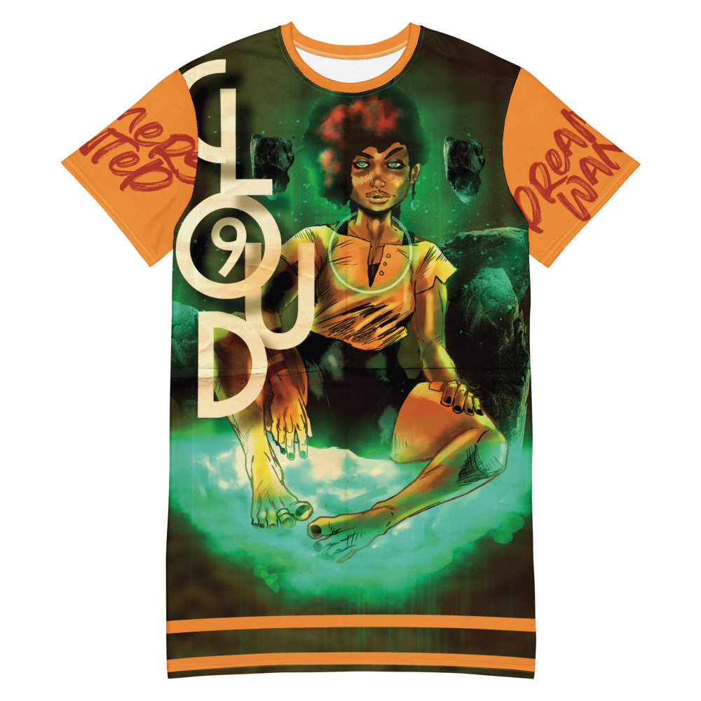 Get our new Cloud 9 tshirt dress featuring our character Nimbus, a deity of creativity and dreams. Sublimated and in full color. order yours today or check it out at the Nevada Nerd Market in Oceanside, Ca.